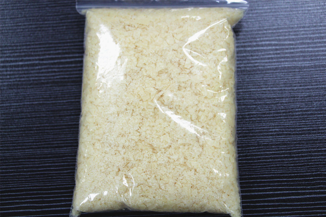 2. Cold water: Add the flakes in water (room temperature) gradually in the proportion of 5-10%, stir them for 3-5mins, heat up to 40-50°C and stir them for 40-60mins, stir again until completely dissolved. (Soaking in water(room temperature) for one night, then heat up to 35-40ºC, stir them for 1-2 hours to dissolve completely)